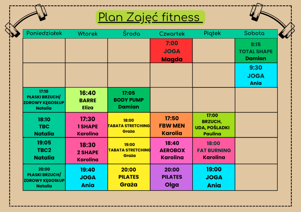 Harmonogram Zajęć FITNESS